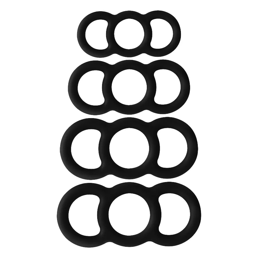Anillo para el pene diseñado para brindar erecciones fuertes, duraderas y grosor. Coloca el orificio más grande en la base del pene y los dos orificios laterales en los testículos.