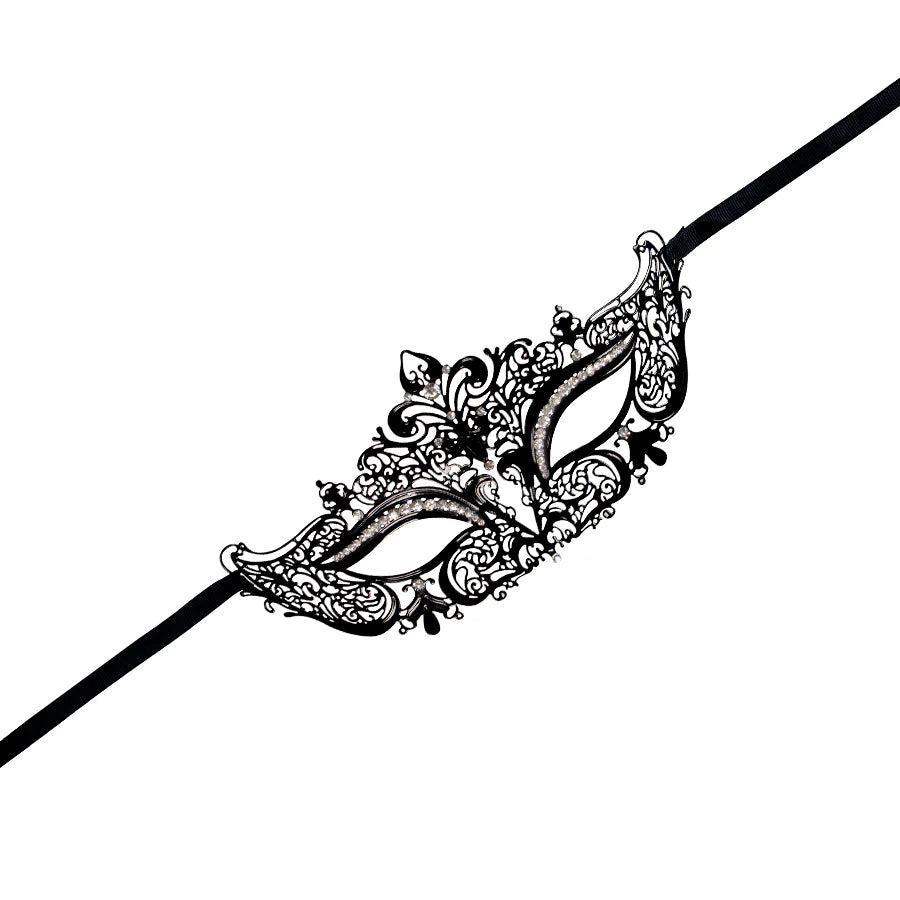 Antifaz tipo carnaval en arabescos elaborado en metal y piedra murano para darle un poco de brillo.