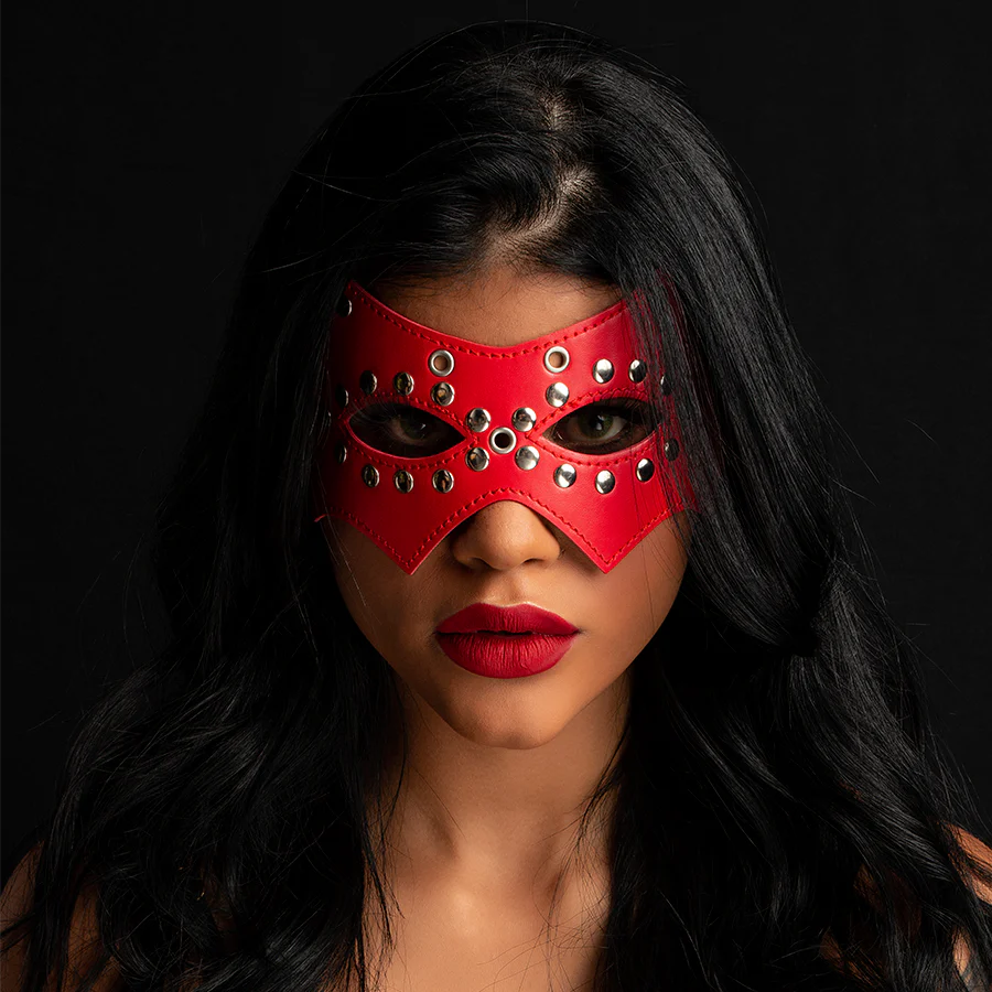 Tapa ojos en cuero sintético para juegos fetichistas con pequeños taches decorativos.