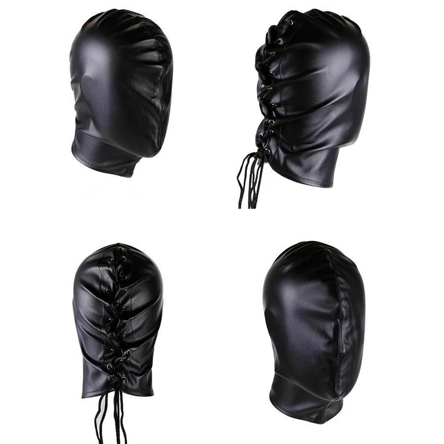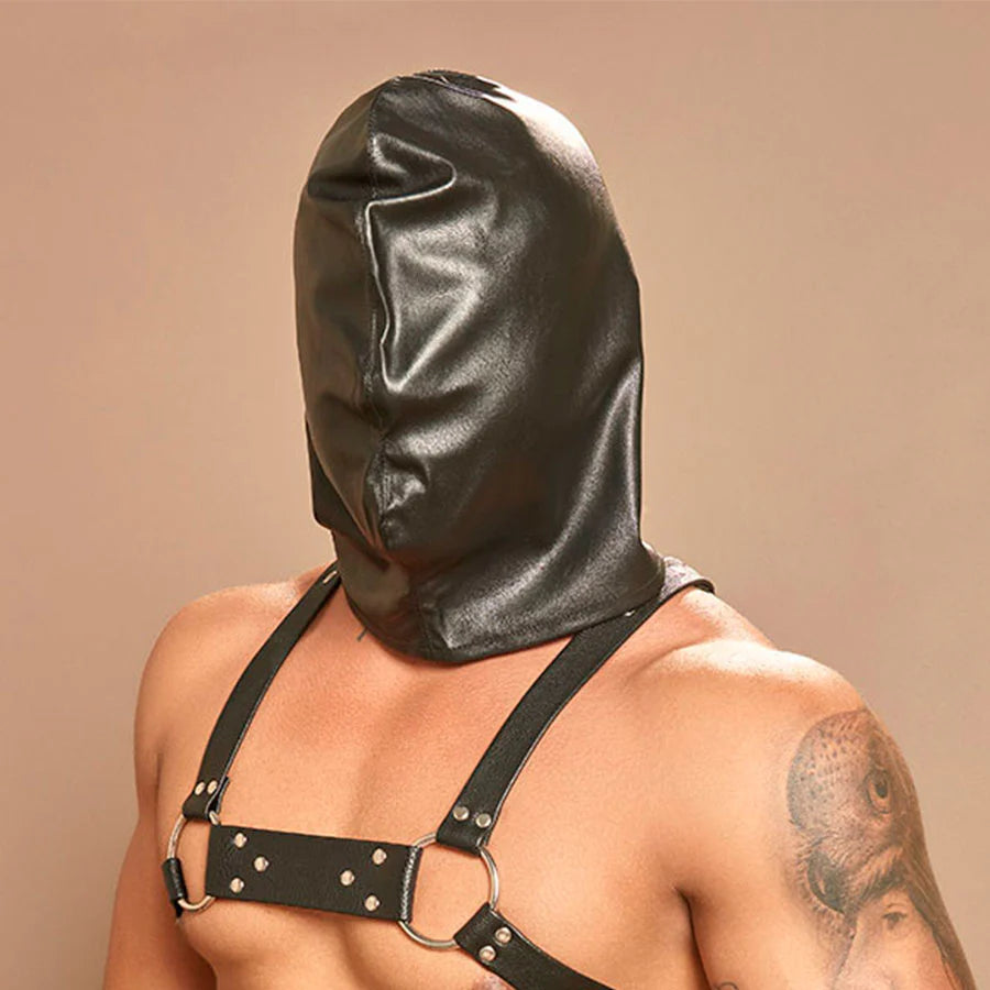 Gimp mask o máscara de ahogo con amarre posterior y en el cuello para mayor control. Sólo para expertos.