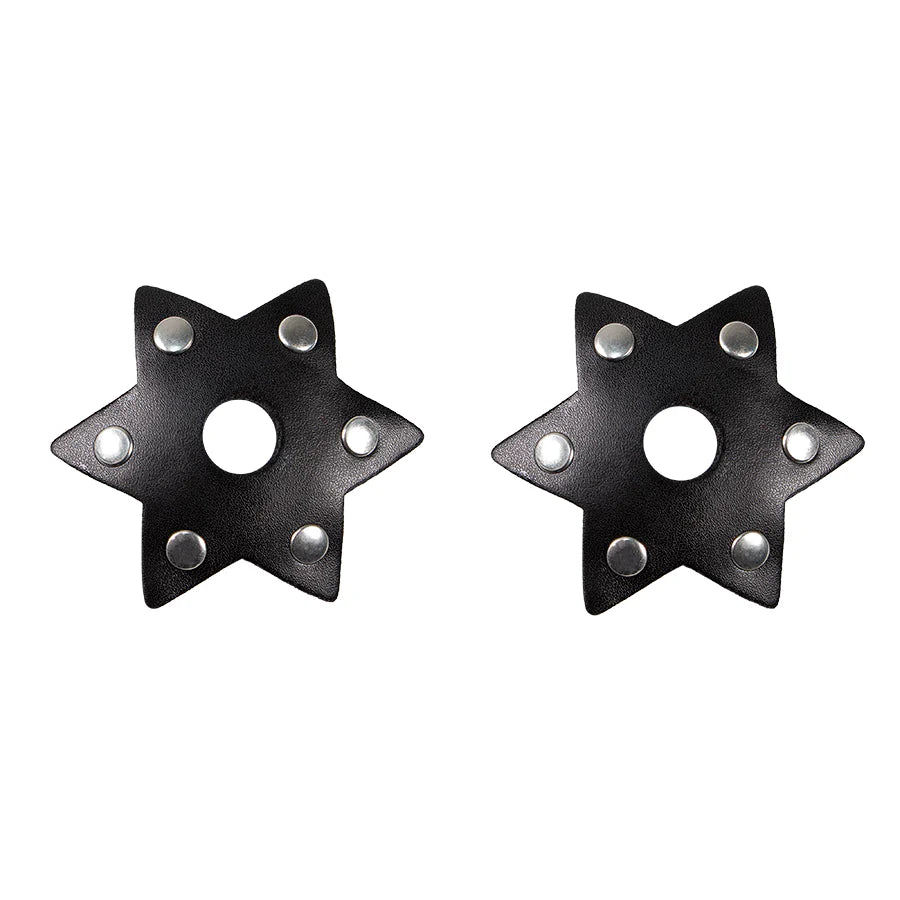 Pezoneras con forma de estrella con pequeños taches en las puntas.