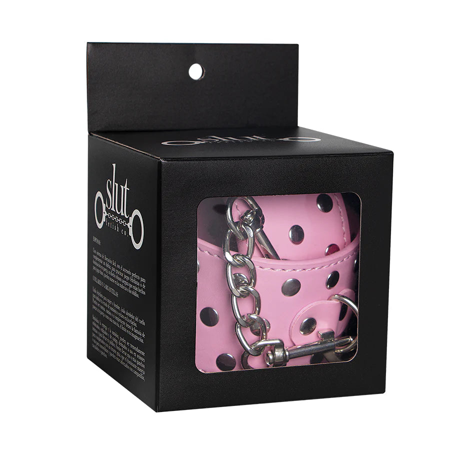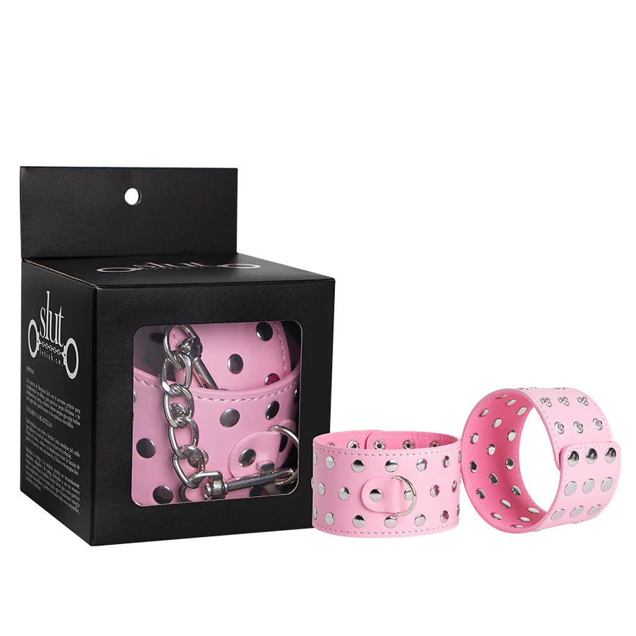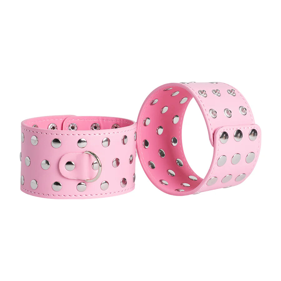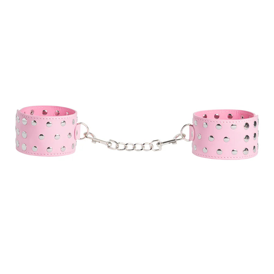 Juego de esposas para tobillos, incluyen taches a su alrededor.