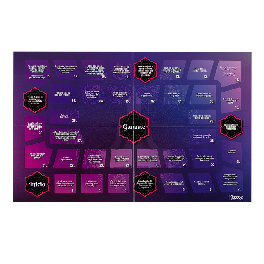 Disfruta de este juego erótico para jugar en pareja o en grupo; comienza con pruebas sencillas, masajes, besos, caricias, a medida que vas avanzando aumenta la temperatura y las acciones se vuelven más candentes.