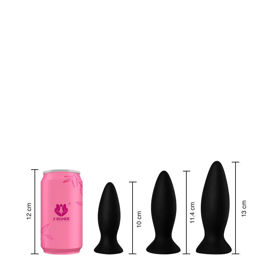 Disfruta de tus fantasías anales en compañía de este trío de plugs. Incluye bala vibradora que podrás introducir en los plugs y gozar de sus 9 modos de vibración.