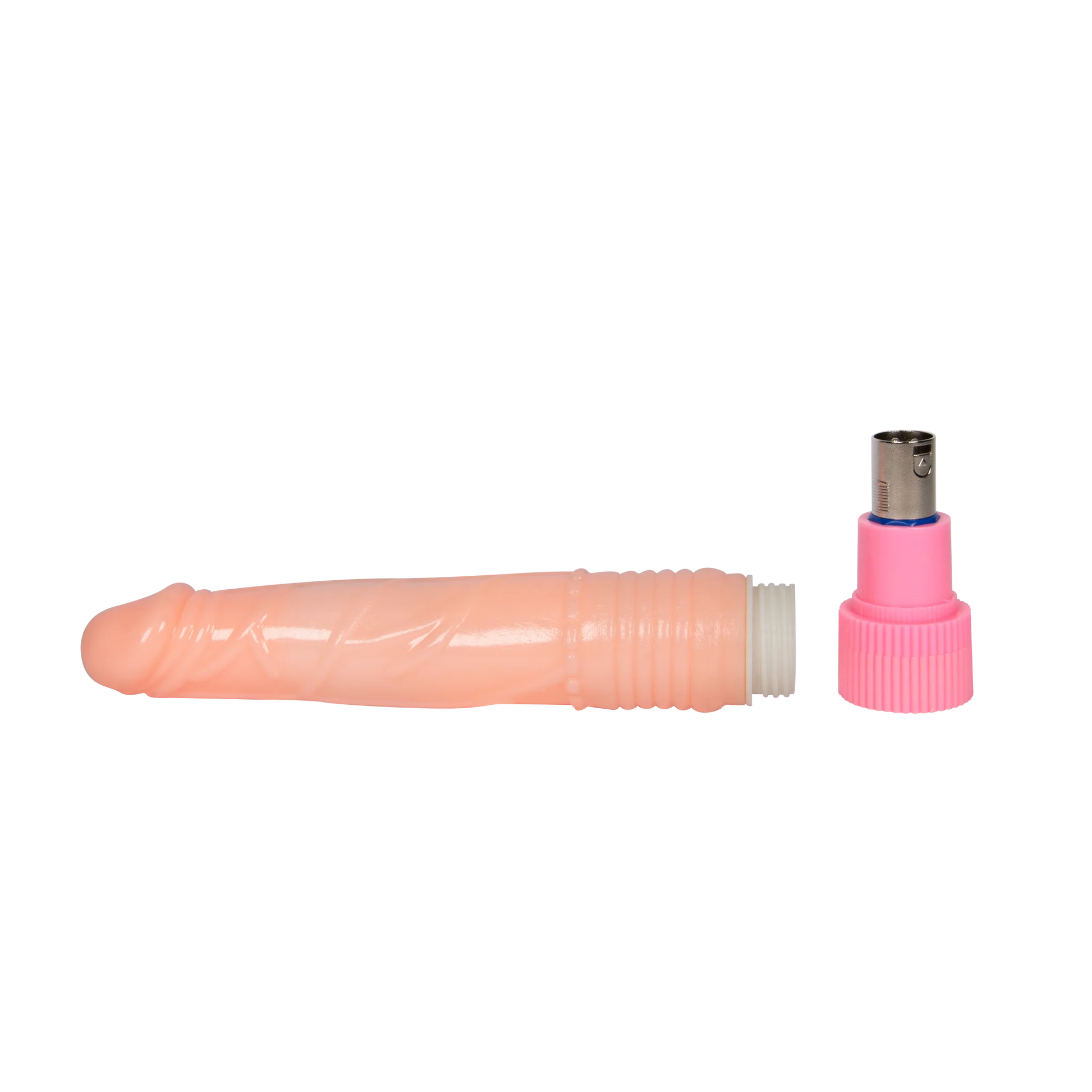 Máquina sexual con dildo realista. Cuenta con cuatro ventosas para adherirse al suelo con muy buena estabilidad. Incluye control remoto para aumentar la vibración y la velocidad del movimiento de penetración.