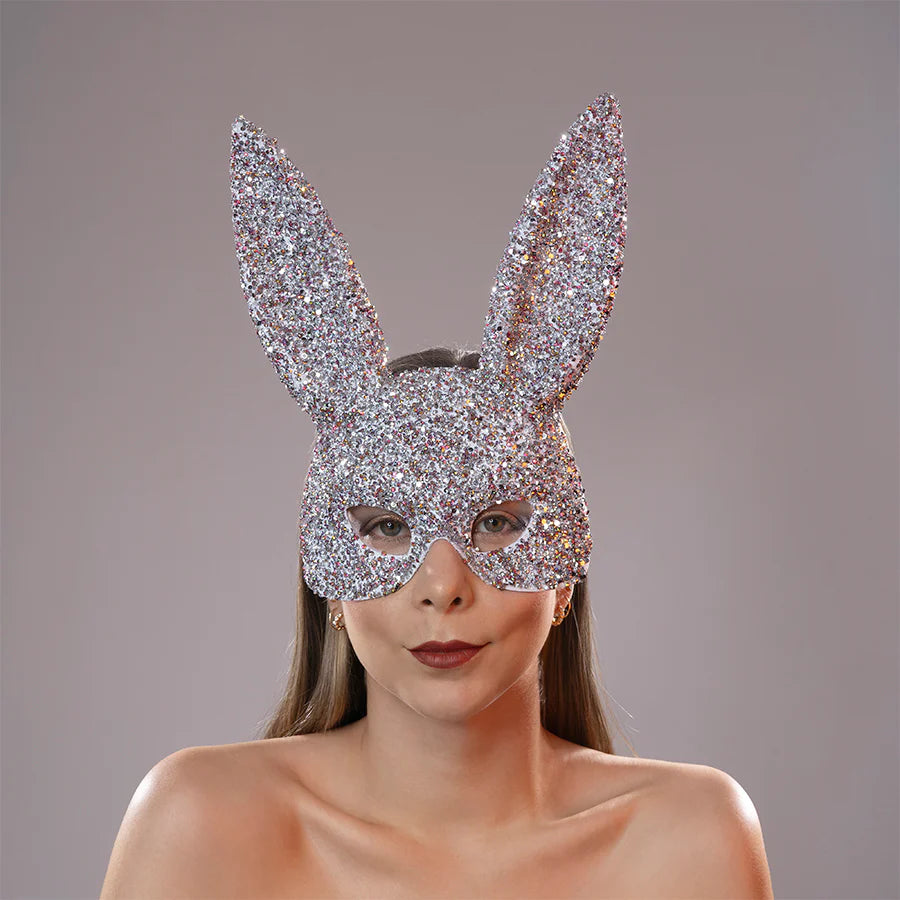Máscara sexy con orejas de conejo, decorada con unas hermosas piedras imitación de murano.