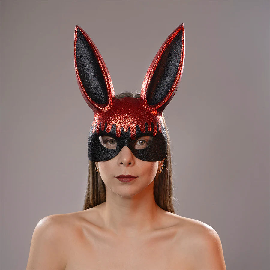 Máscara sexy con orejas de conejo, decorada con mirella roja para que brilles sin parar.
