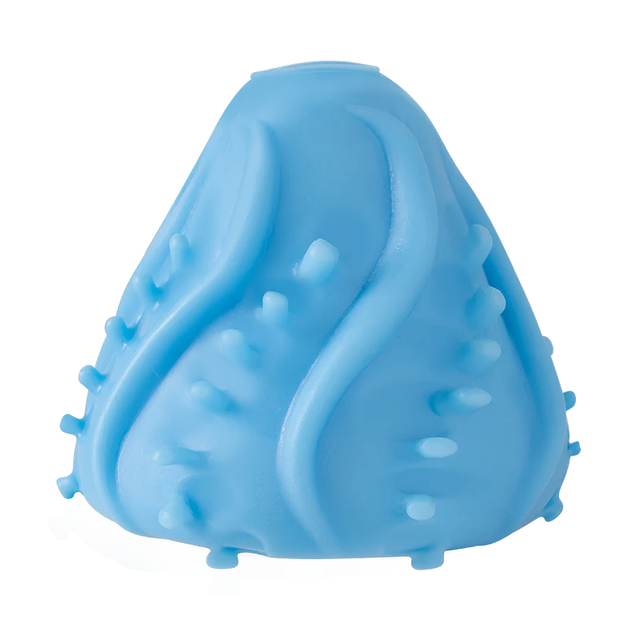 Masturbador masculino en forma de huevo con textura suave y nódulos en forma de ondas y pequeños puntos.