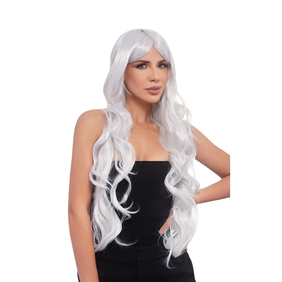 Destaca con un look único y sofisticado gracias a esta peluca rizada en un deslumbrante color blanco puro. Sus rizos voluminosos y definidos aportan un aire de misterio y glamour que no pasa desapercibido, perfecto para quienes quieren marcar tendencia con personalidad y fuerza.