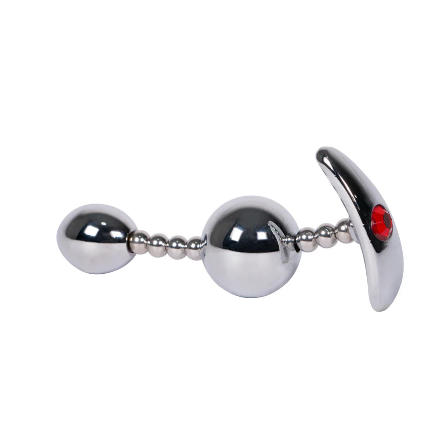 Plug metálico con pequeños nódulos en su cuerpo y dos esferas, una en la mitad y otra en la punta que complementa el placer de la penetración.