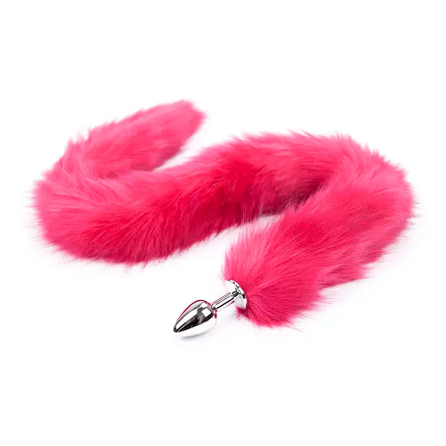 Cola de zorro sintética extra larga con plug anal metálico incorporado, para juegos de rol, fetichistas y de cosplay.
