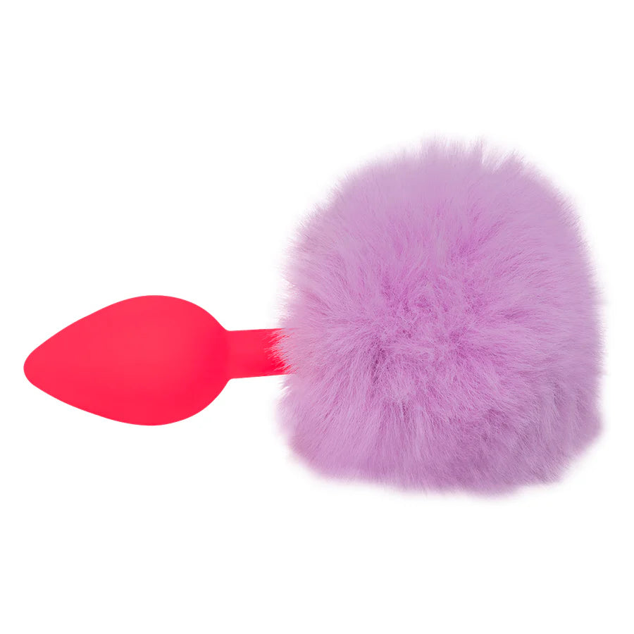 Plug anal de silicona con cola de conejo para juego de roles y fetichismo.