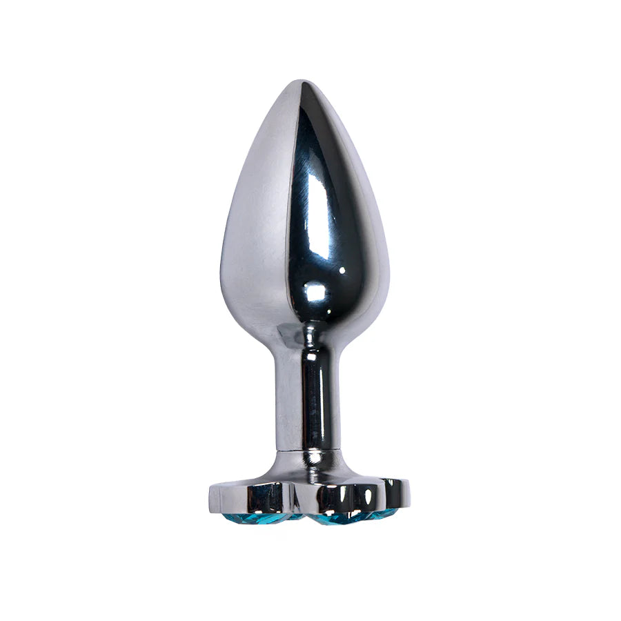 Plug metálico con base en forma de flor, sus pétalos son unas pequeñas joyas en forma de corazón.