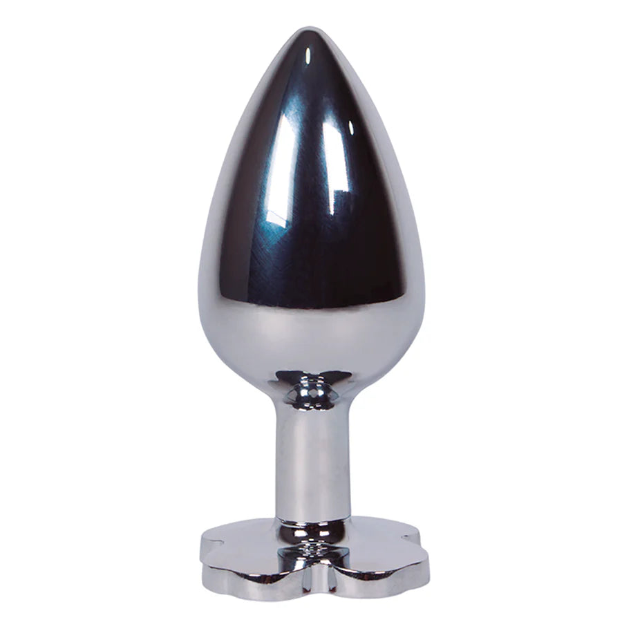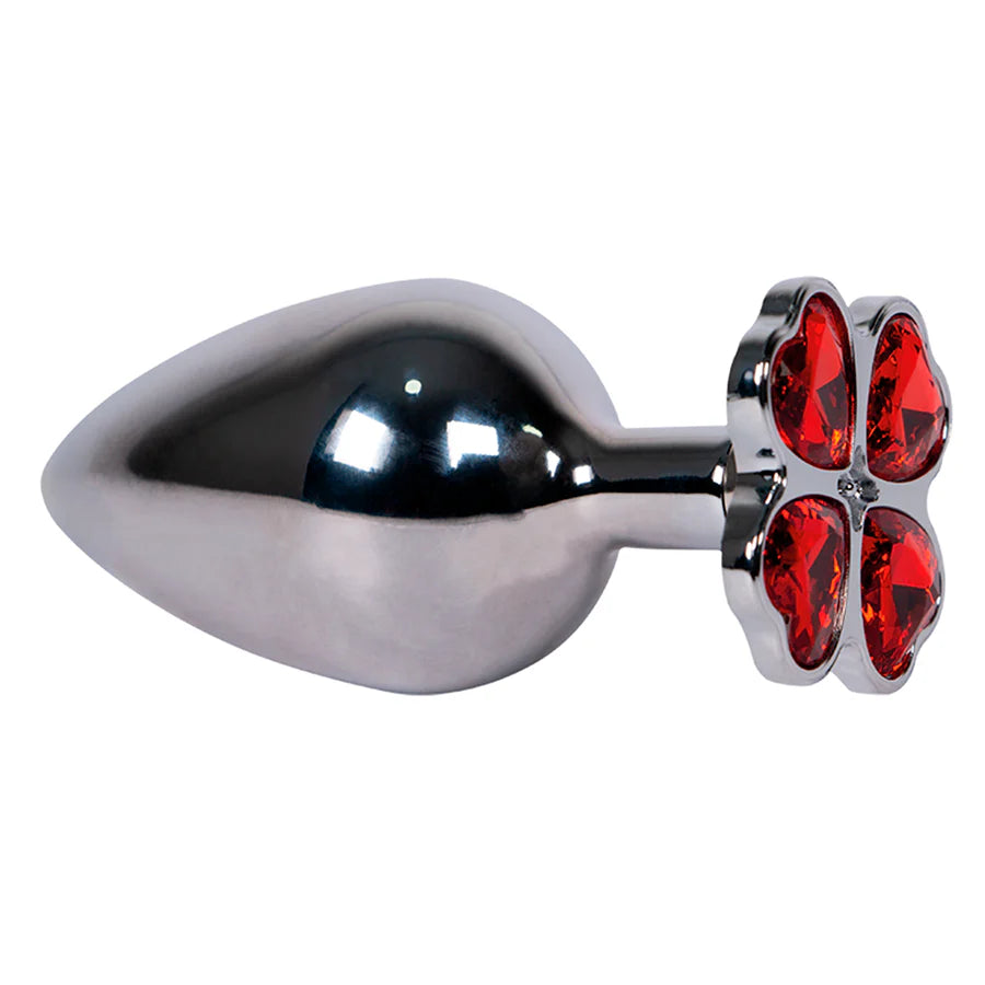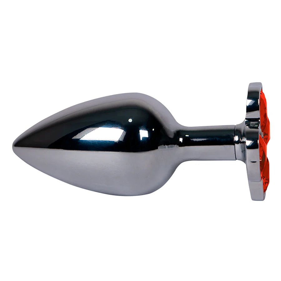 Plug metálico con base en forma de flor, sus pétalos son unas pequeñas joyas en forma de corazón.