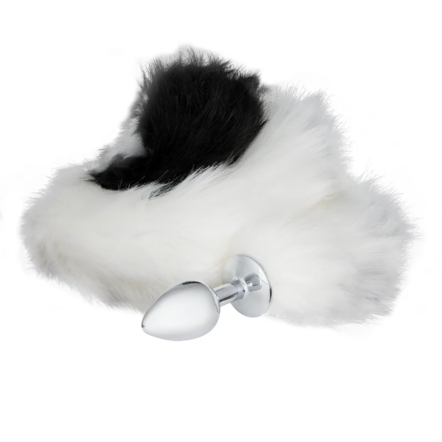 Cola de zorro sintética con plug anal metálico incorporado, para juegos de rol, fetichistas y cosplay.