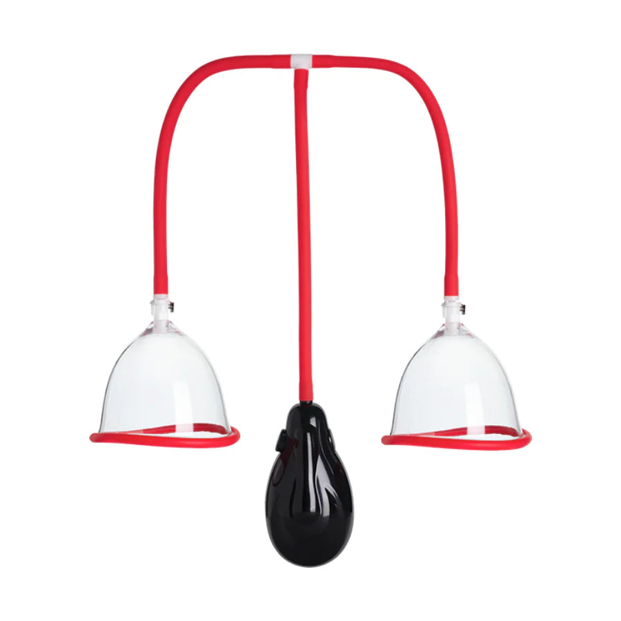 Sistema diseñado para aumentar el tamaño de los senos de forma temporal, disfrutar del juego de succión e incrementar la sensibilidad. Simplemente pon las copas sobre los senos, usa la bomba electrónica o manual y bombea hasta el nivel de placer deseado. La succión se libera de forma fácil y segura.