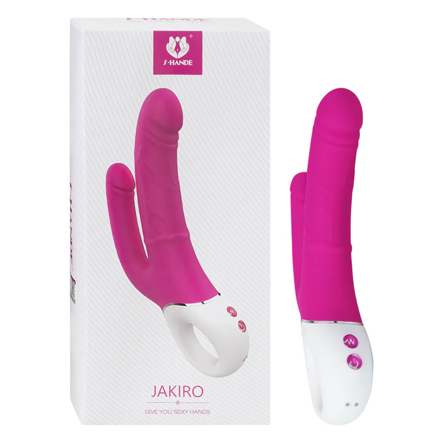 S-Hande Jakiro es un masajeador y estimulador del punto G y Anal Plug está hecho en tacto suave, tiene glande definido con texturas venosas. Tiene 9 modos de vibración en el masajeador principal y 9 modos de vibración en la punta del tapón anal. El producto es suave y ergonómico, su forma es flexible, facilitando su manipulación y estimulación, aportando una agradable sensación de uso.